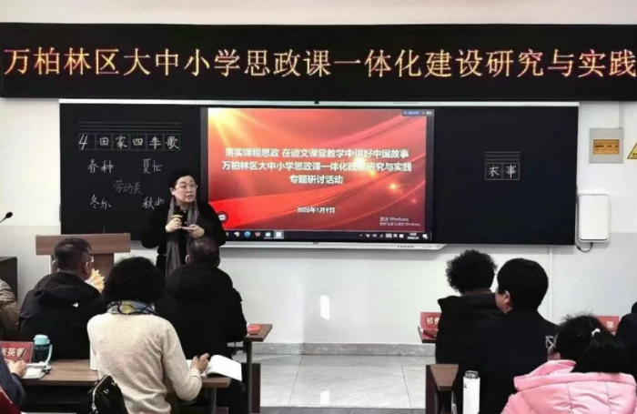 1月9日上午,太原市万柏林区教育体育局在万柏林区玉门花园小学举办“万柏林区大中小学思政课一体化建设研究与实践专题研讨活动”,区教体局相关领导和所辖各中小学教学副校长参加了此次活动。山西省大中小学思政课一体化建设指导委员会成员、马克思主义学院教授樊荣,青年博士教师赵军应邀进行点评指导。