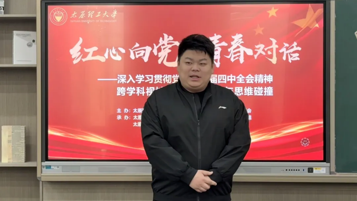 11月21日,太原理工大学马克思主义学院携手校团委联合举办深入学习贯彻党的二十届四中全会精神“红心向党·青春对话”主题活动。活动以马克思主义宏大世界观和方法论为指引,以学习贯彻党的二十届四中全会精神为主题,通过主旨报告、学术交流与深度对话,帮助青年大学生将全会精神转化为坚定理想信念、深耕学术研究的实际行动,实现了跨学科视域下的成长对话与思维碰撞。