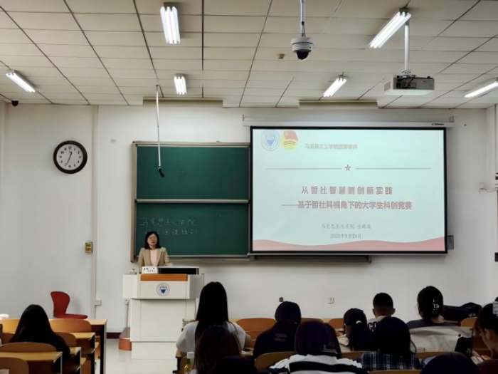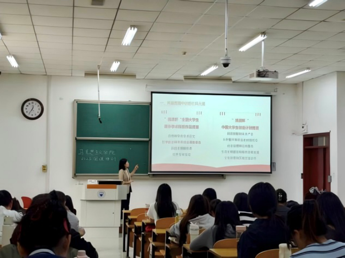 团课第四讲,院党委副书记安晓艳老师以“从哲社智慧到创新实践” 为主题,深入浅出地阐述了哲学社会科学在创新创业及 “互联网 +” 竞赛中的核心价值。她强调打破学科壁垒、推动文理交叉融合的重要性,还回顾了学校竞赛佳绩,激励学员将理论转化为创新成果。