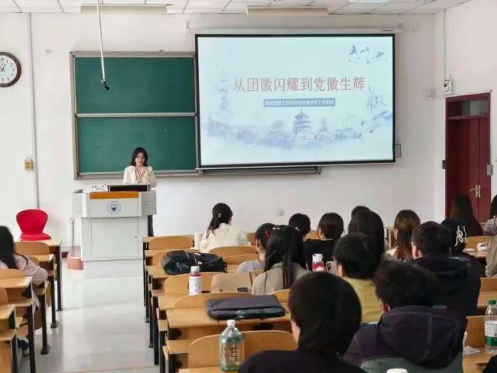 团课第一讲,院团委书记冯妍老师以“从团徽闪耀到党徽生辉”为主题向同学们详细介绍基础团务与发展党员工作流程,并于“党团咨询坊”环节为学员答疑解惑,助力学员明晰党团工作,坚定向组织靠拢的信念。