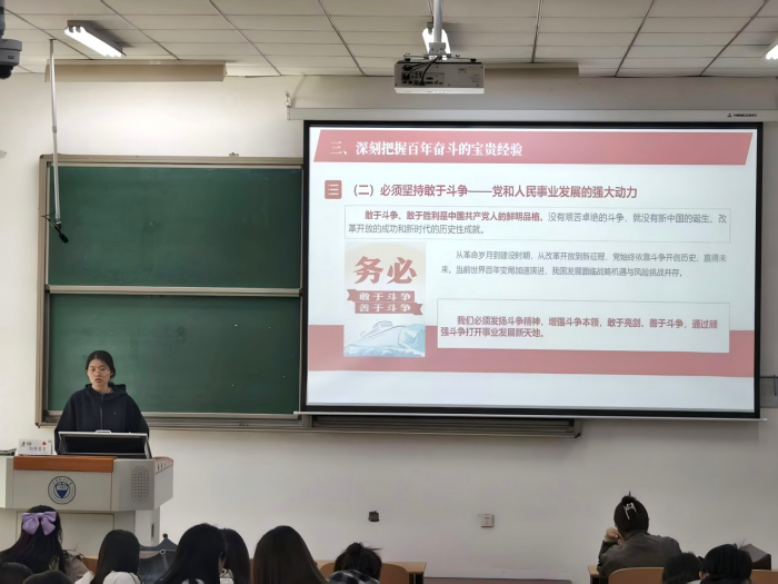 团课第三讲,学院研究生会胡婷同学、曹艺欣同学、李佳滢同学、弓佳一同学主讲了以中国共产党党史、新中国史、改革开放史与社会主义发展史的“四史”为主题的团课,加深了学员对党的历史与国家发展历程的了解,点燃了其投身中国式现代化建设的热情。