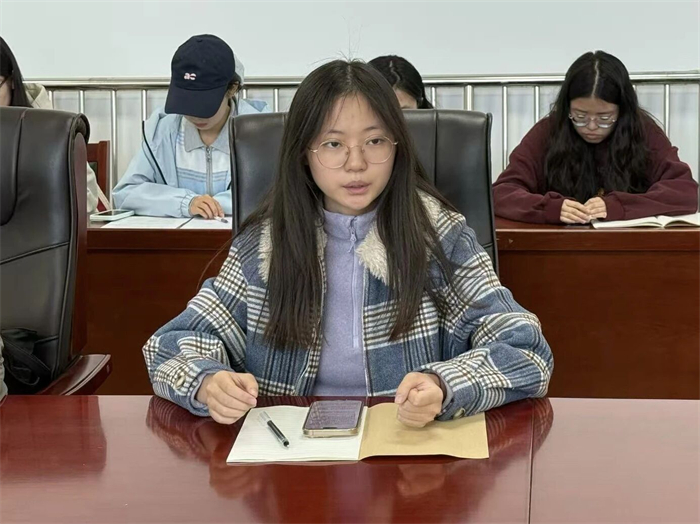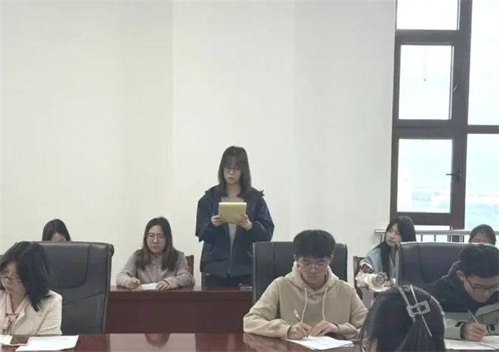 研究生会主席团成员、融媒体中心负责人董硕汇报了中心上学年工作开展情况。她表示,在新的学年里,将带领全体成员坚守初心,锐意进取,进一步提升学院宣传工作水平。