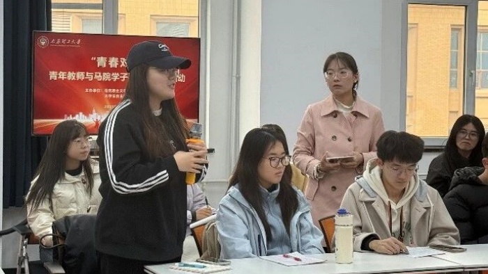 交流对话环节,同学们主动敞开心扉,围绕“如何提升政治理论水平”“如何突破学术研究瓶颈”“如何进行求学就业规划”“如何处理好学习工作情感抉择”等成长中遇到的困惑,向老师们虚心请教。