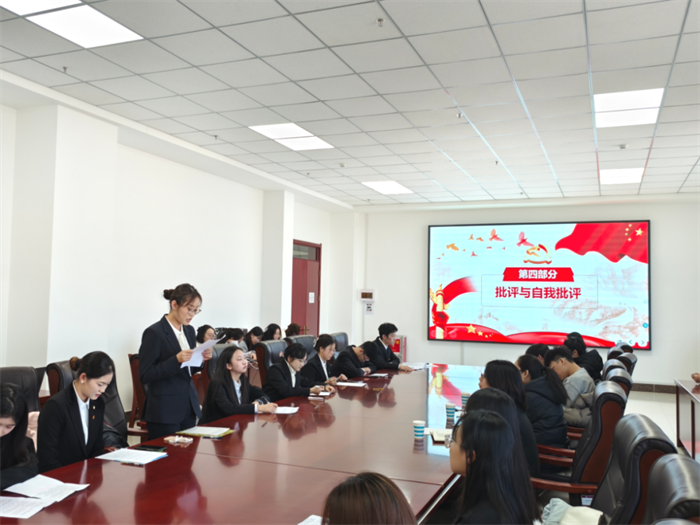 团支部委员及其他团员们以习近平总书记提出的“五个模范,五个带头”为成长指引和实践要求,围绕自身思想信仰、品行作风、工作方法等方面依次发言,进行自我批评。在自我批评的同时,团员们也以真心、诚恳的态度展开了团内批评,在支部内营造了团结、紧张、严肃、活泼的优良氛围,增强了团员自我净化、自我提升、自我发展的能力。