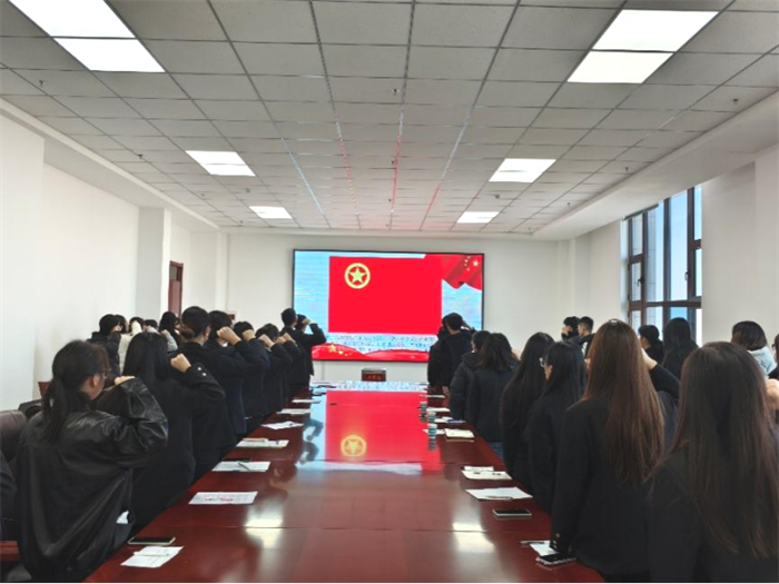 最后,宋鑫铭带领全体团员面向团旗,重温入团誓词。全体同志努力将誓词镌刻在自己内心,做到内化于心、外化于行。